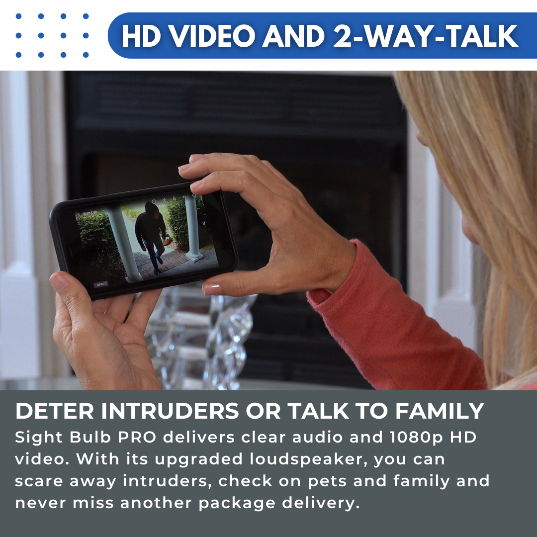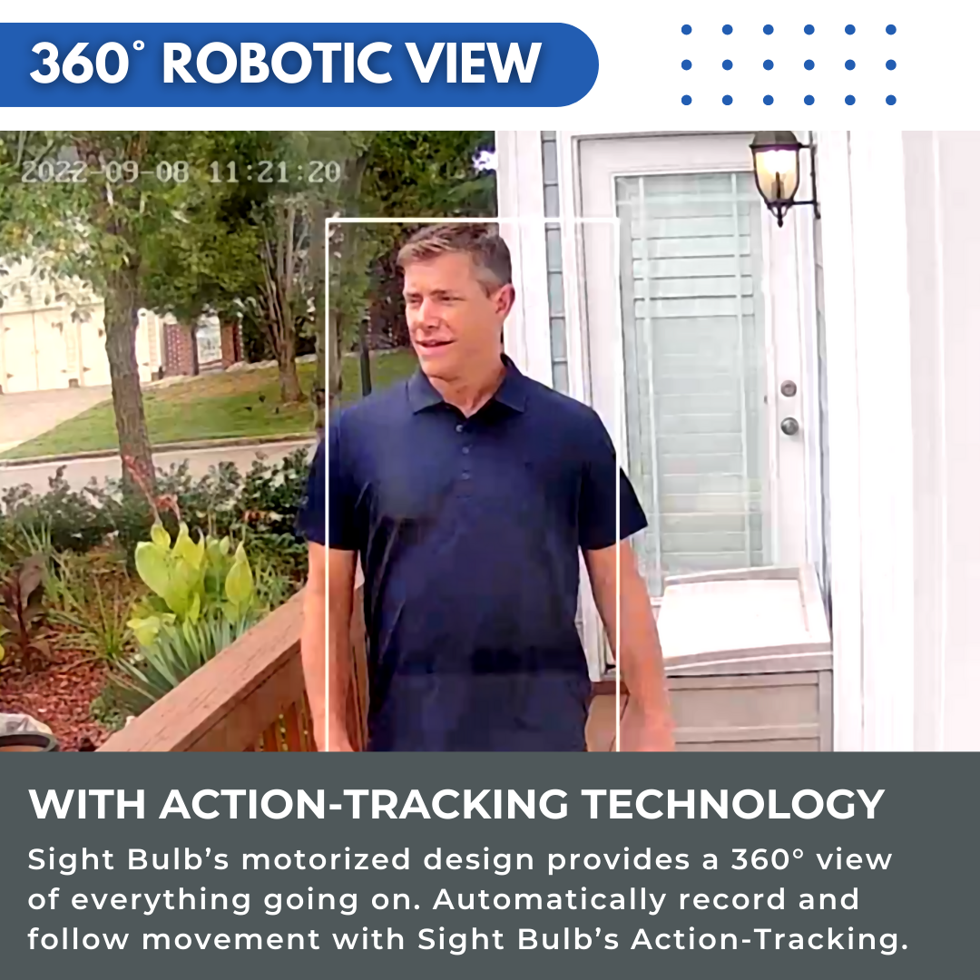 Increase home security and upgrade from dim light bulbs! i Sight Bulb PRO is a smart Wi-Fi security camera that screws into a standard light bulb socket! Features 360° Robotic Motion, 2-Way-Talk, and a 75W equivalent LED light! Break free from wires, batteries and subscriptions with Sight Bulb. (64GB microSD card included!)